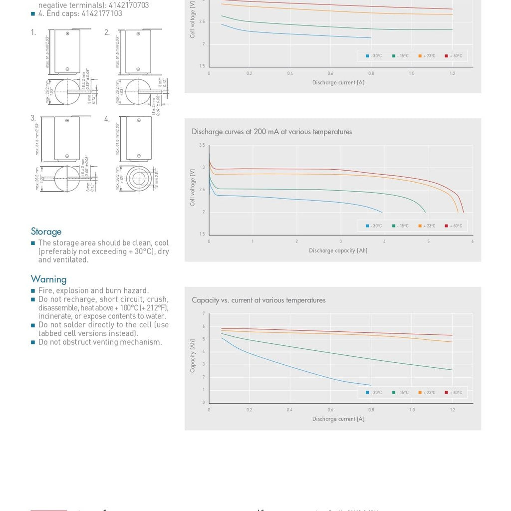 M 52 EX SV is a 3.0 V Primary Lithium-Manganese Dioxide (Li-MnO2) Cylindrical Cell that has a high drain/ high pulse capability, high voltage response, ATEX and IECEx certified, spiral construction, hermetic glass-to-metal-sealing, and a low self discharge.
